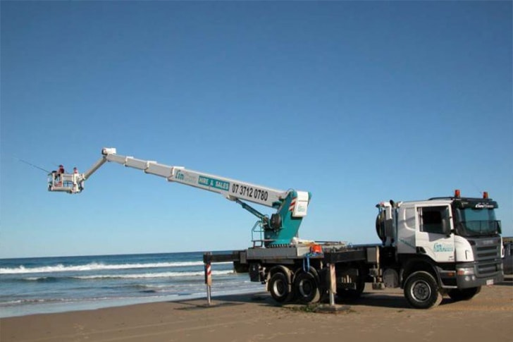 The lengths that some people go just for the sake of fishing is just out of this world. This group of men went up in the air, quite literally, to catch some fish for a meal. Somehow, they seem to have maneuvered a boom lift crane by the beach to elevate them.